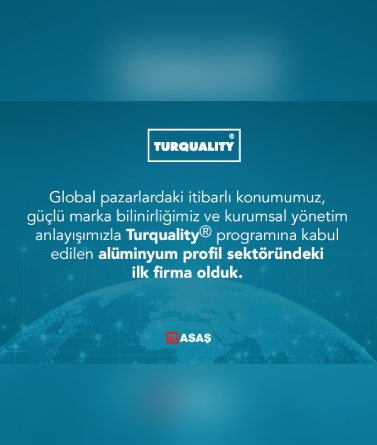 Türkiye’nin lider sanayi kuruluşlarından ASAŞ, marka gücü, kurumsal yönetim anlayışı ve global pazarlardaki itibarlı konumuyla Turquality® Destek Programı kapsamına alınarak önemli bir başarıya imza attı. Böylece ASAŞ, alüminyum ekstrüzyon sektöründe Turquality® programına kabul edilen ilk firma oldu.