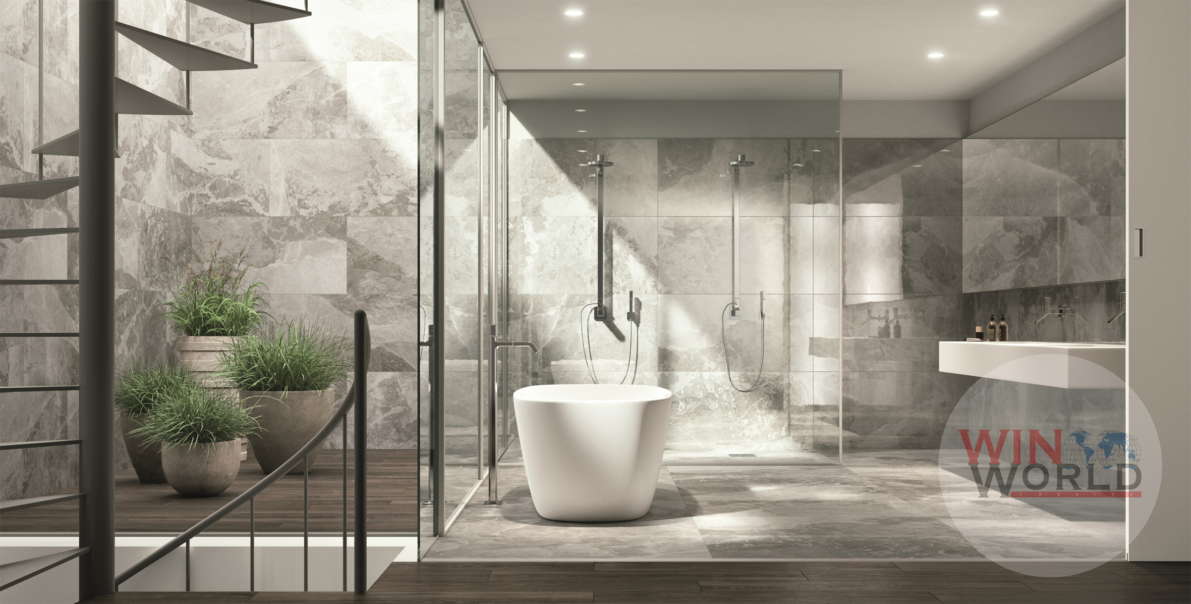 Mermerin estetik duruşuyla öne çıkan K-Greige, yüzeyine ayırt edici özelliğini kazandıran gri rengi sayesinde mekanlarda farkındalık yaratıyor.