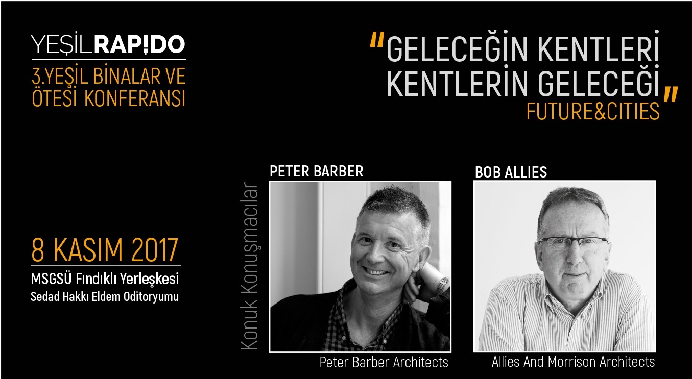 l Rapido, Yeşil Binalar ve Ötesi Konferansı, Dünya Şehircilik Günü olarak kutlanan 8 Kasım 2017 tarihinde “Future & Cities – Geleceğin Kentleri, Kentlerin Geleceği” temasıyla gerçekleştirilecek. Konferansın bu yılki yıldız konukları, yapıların ve kentlerin sürdürülebilirliği konularını, projeleri ve global deneyimleri üzerinden ele alarak anlatacak olan iki ünlü İngiliz Mimar Bob Allies ve Peter Barber…