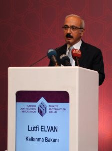 İnşaat sektörünün büyümenin lokomotifi olduğunu kaydeden Kalkınma Bakanı Lütfi Elvan, “Zaman zaman müteahhitlik ve inşaat sektöründeki bu büyümenin gerçek anlamda Türkiye’nin yüksek teknoloji üretmesine uygun gelişmeler olmadığı da ifade edilmiştir. Ancak ben buna katılmıyorum” dedi. Elvan şöyle devam etti: “Çünkü inşaat sektörü özellikle ileri ve geri bağlantıları olan en yüksek sektörlerden biridir. Dolayısıyla inşaat sektörü ekonomimizin bugün canlanmasına ciddi katkı sağlıyor, bundan sonraki süreçte de hem yurtiçinde, hem yurtdışında gerçekten büyük bir performans göstermesi söz konusu olacak, canlılık devam edecektir. Türkiye ekonomisine katkısı devam edecektir. Bir taraftan kamu altyapı yatırımları, diğer taraftan konut alanında güçlü bir yatırım, kentsel dönüşüm projeleri ve yurtdışı müteahhitlik hizmetlerini düşündüğümüzde gerçekten inşaat sektörüyle bağlantıları olan endüstrimizin güçlenmesi için önemli bir fırsatın söz konusu olduğunu ifade edebilirim. İşte inşaat sektöründeki, müteahhitlik hizmetlerindeki bu güçlü yapıyı bizim mutlaka fırsata dönüştürmemiz gerekiyor. Neresinden bakarsak bakalım, eksikliklerimiz olmasına rağmen, yapacağımız çok fazla sayıda iş olmasına rağmen Türkiye müteahhitlik hizmetlerinde dünyada en çok konuşulan ülkelerin başında gelmektedir. Ortalama proje tutarındaki artışa baktığınızda 3-5 milyon dolarlardan 100 milyon dolarlara yükselmiş durumda. Bu bizim müteahhitlerimizin çok daha nitelikli, çok daha vasıflı işler yaptığını özellikle yurtdışında göstermektedir. Bu da bizler için gurur kaynağıdır.