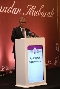 İftar davetinin ev sahipliği yapan Türkiye Müteahhitler Birliği Başkanı Mithat Yenigün, “Birlik ve beraberliğin, Ramazan ruhunun her zamankinden daha büyük değer taşıdığı bugünlerde; TMB olarak Hükümetimiz, bürokrasimiz, üyelerimiz, yabancı dostlarımızla, bu mübarek ayda bir araya gelmekten büyük mutluluk duyuyorum” dedi. Yenigün özetle şunları söyledi: