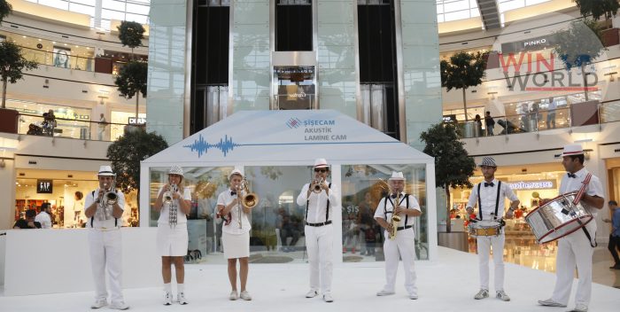 16 Ekim Pazar günü düzenlenen Şişecam Akustik Lamine Cam’ın tanıtım etkinliğinde Burhan Öçal Percussion Trio feat. Murat Uncuoğlu’nu ağırlayan Şişecam Düzcam, etkinlik kapsamında sessiz oda konseptiyle ziyaretçilere gün boyu gürültü kontrol camlarının performansını test etme imkânı sundu.