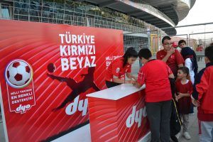 Milli Takımın en renkli destekçisi DYO, etkinliğe katılan miniklerin yanı sıra stadyum dışında kurmuş olduğu stantta tüm futbol severlerin yüzünü kırmızı-beyaz ile renklendirdi.